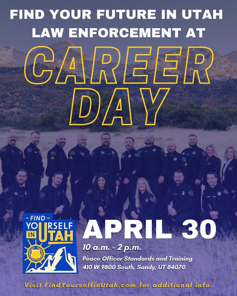 On April 30, 2025, the Utah Chiefs, along with POST, will be hosting the first Find Yourself in Utah Law Enforcement Career Day, which is designed to showcase all aspects of both sworn and civilian opportunities within law enforcement. The event will take place from 10 a.m. to 2 p.m. at the POST (Peace Officers Standards and Training) Conference Center in Sandy.